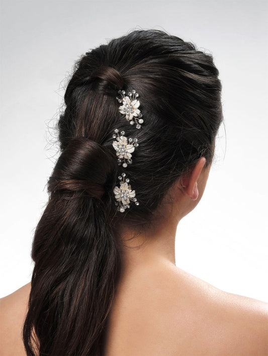 Som brud ønsker man gjerne en vakker frisyre, enten du ønsker det litt løst og romantisk eller om du ønsker en strammere oppsats eller en bohemsk flette, valgene er mange. En vakker hårpynt er gjerne prikken over i-en i frisyre. Også her er valgene mange! Hårpynt festet på kam, hårpynt festet på klype, tiaraer, myke og fleksible "hairvines" osv. og du finner et godt utvalg hos Anna Johnson i Lillestrøm, eller du kan kjøpe de i nettbutikken vår og få de tilsendt i posten. Vår hårpynt er i høy kvalitet, med nydelige stener som glitrer som ekte diamanter. Velg også om du ønsker hårpynt i sølv, gull eller rosegull, enkelte finnes i alle 3 farger.