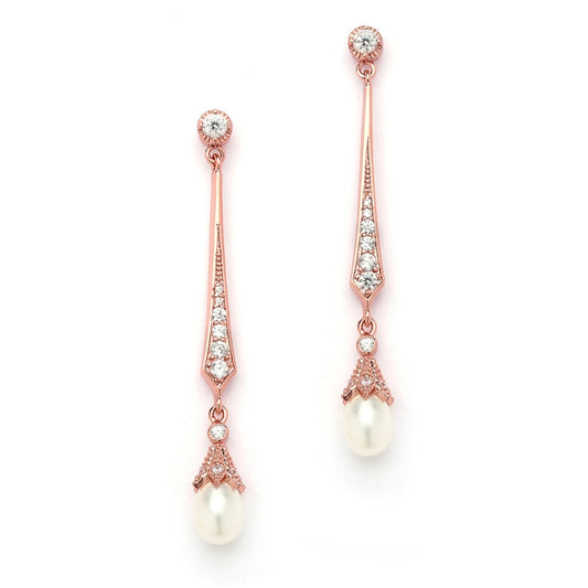 Øredobber Dangle Freshwater Pearl - Rose gold