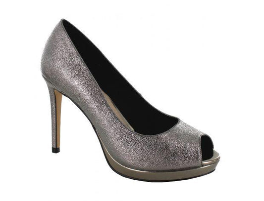 Metallic Peep-toe Pump Dark Grey