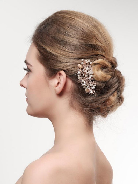 Hårpynt Clip "Pearl & Open Flower" Rose Gold