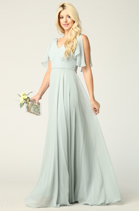 Selskapskjole Chiffon Sleeve V-Neck Sage