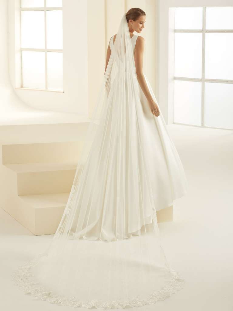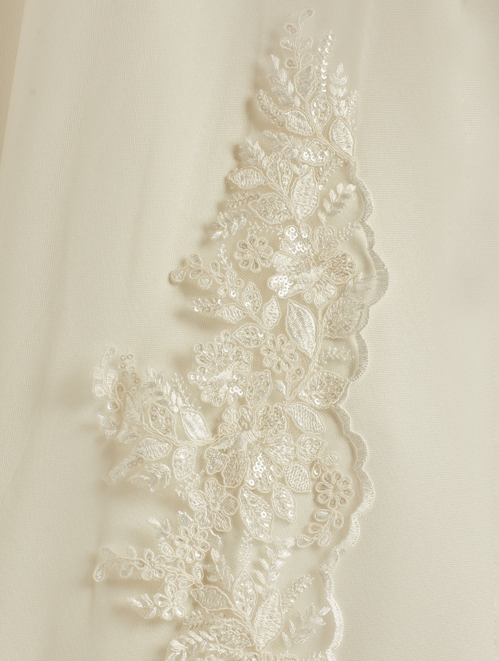 Et utrolig fint brudeslør med en bred blondekant nederst på sløret. Sløret er 300cm langt.